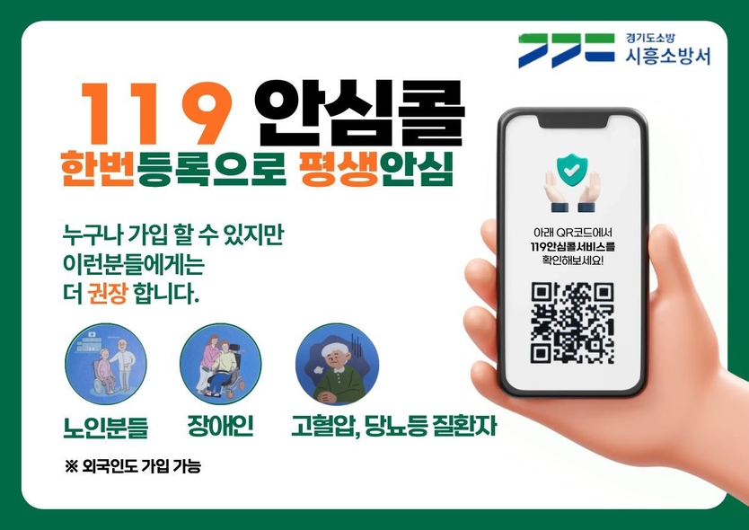김태연 시흥소방서장은 “설 명절은 가족이 함께하는 소중한 시간이지만, 응급상황은 예고 없이 찾아올 수 있다”며 “119안심콜 서비스는 위급한 순간 소중한 생명을 지키는 든든한 보험과 같은 만큼, 많은 시민이 가입해 안전한 명절을 준비하시길 바란다”고 전했다.