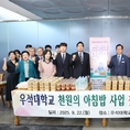 【우리일보 이재환 기자】 완주군이 우석대학교 교양관에서 ‘천 원의 아침밥’ 사업 하반기 첫날 맞이 행사를 개최하고 본격적인 사업 추진에 나섰다. 22일 완주군은 우석대학교 교양관에서 천 원의 아침밥 사업 하반기 첫날 맞이 행사를 가졌다. 이날 행사에는 유희태 완주군수와 박노준 우석대 총장, 김정은 사회적협동조합 양지뜰 대표 등이 참여해 바쁜 학업과 생활로 아침식사를 거르는 대학생들에게 로컬푸드 식재료를 활용한 아침식사를 직접 전달하고, 격려의 메시지를 전달했다. 이번 행사는 하반기 사업의 성공적인 추진을 다짐하고, 학생들의 다양한 의견 청취와 함께 사업의 내실화를 기하기 위해 마련됐다. 학생들에게 제공될 메뉴는 상반기 추진된 만족도 조사를 반영해 지역산 쌀을 활용한 덮밥을 다양화하고, 과일 등 영양가가 높고 건강한 간편식 식단으로 구성한다. 특히, 직매장을 운영 중인 완주로컬푸드 협동조합에서는 판매되지 않은 신선한 농산물을 기부하고자 하는 농가를 적극 발굴 연계해, 사업에 힘을 보탤 계획이다. 완주군은 상반기 동안 진행된 사업을 도 먹거리통합지원센터와 함께 지속적으로 모니터링해 하반기에도 도시락의 품질을 유지하고, 현장의 반응에 민감하게 대처하는 등 사업을