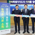 【우리일보 노연숙 기자】 16일 전북특별자치도청 회의실에서 열린 농어촌 기본소득 시범사업의 성공적인 추진을 위한 도-시군 업무협약식에 김관영 전북자치도지사와 최훈식 장수군수, 최영일 순창군수가 참석해, 2026년부터 시행될 농어촌 기본소득 시범사업을 선도적으로 추진하겠다는 의지를 다지는 퍼포먼스를 하고 있다.