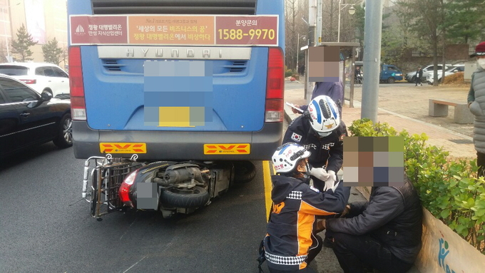 오토바이 운전자 양씨(44세,남)는 우측 안면부에 심한 열상과 출혈, 무릎 찰과상 등이 확인되었으며 119구급대는 환자 안전조치 후 인근병원으로 이송하였다.