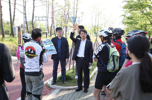 이에 이재현 서구청장을 비롯해 관련 부서장 등 직원들은 지난 6일 오후 현장에서 직접 서구 자전거 동호회 회원들을 만나 의견을 수렴하고, 자전거 이용자의 입장에서 이들이 청라까지 들어올 수 있게 할만한 다양한 아이디어를 논의하는 시간을 가졌다.