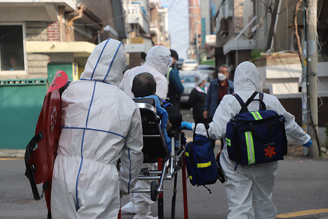 특히 최전방에서 유증상자를 접촉하는 구급대원들은 현장 활동 시 감염보호복 D급(5종)을 착용하고 단계별 이송 지침에 따라 운영을 실시하고 있으며,이송 후에도 구급장비 및 차량에 대한 철저한 소독ㆍ멸균으로 감염의 확산 및 경로를 차단하는데 최선의 노력을 다하고 있다.