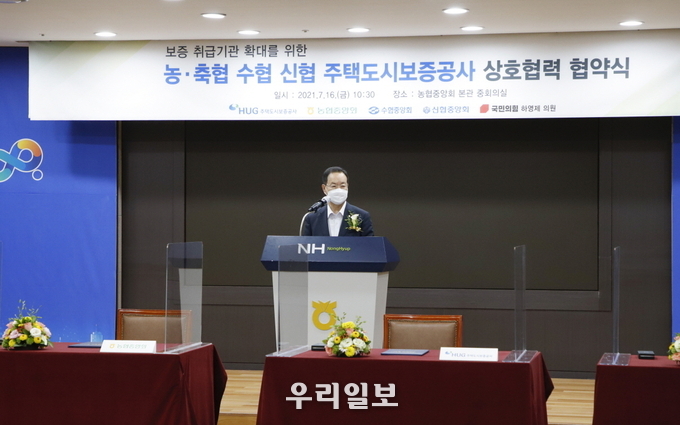 협약식에는 농협중앙회 이재식 상호금융대표이사, 수협중앙회 강신숙 지도경제부대표, 신협중앙회 박영범 관리이사와 함께 주택도시보증공사(HUG) 권형택 사장이 참석했다.