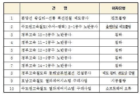 국민의힘 하영제 의원(경남 사천·남해·하동)이 국가철도공단으로부터 제출받은 국정감사 자료에 의하면, 국가철도공사 및 철도 관련 기관의 하자 관리가 부실한 것으로 나타났다.