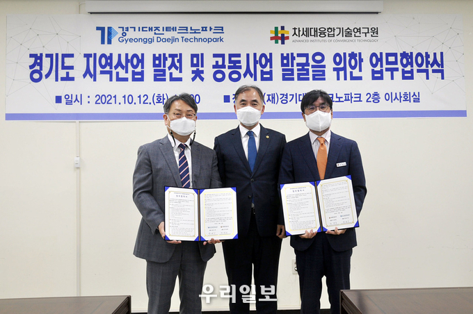차세대융합기술연구원(원장 주영창, 이하 융기원)은 융기원의 연구 결과를 바탕으로 경기 남북부의 지역산업과 경제 발전에 이바지하기 위해 경기대진테크노파크(이하 경기대진TP)와 12일(화) 오후 업무협약을 체결했다고 밝혔다.