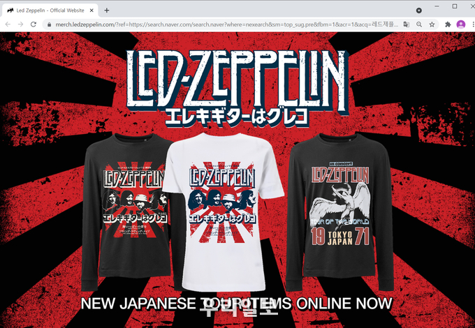 현재 레드 제플린의 홈페이지에서는 1971년 일본에서의 첫 공연후 50주년을 기념하는 티셔츠를 판매하고 있는데, 홈페이지 배경화면과 티셔츠 디자인에 욱일기가 그려져 있다.