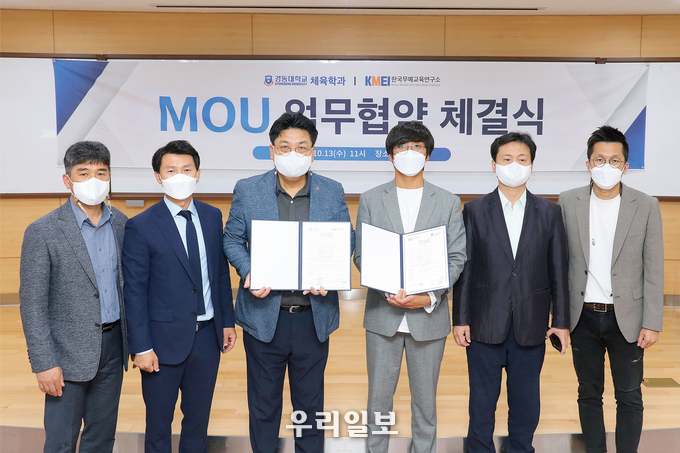 이 날 협약식에는 한국무예교육연구소 김성현 소장과 정승현 연구원, 대한택견회 오성근 사무처장, 안치영 사무차장, 그리고 경동대학교에서는 이영훈 산학협력단장, 나채만 체육학과장이 참석했다.