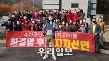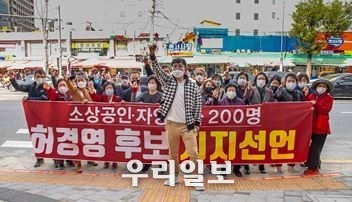 중소상공인, 자영업 대표 200여 명은 서울시 은평구 연서시장 앞과 인근 빌딩 옆에서 허경영 후보에 대한 지지를 선언했다고 6일 밝혔다.