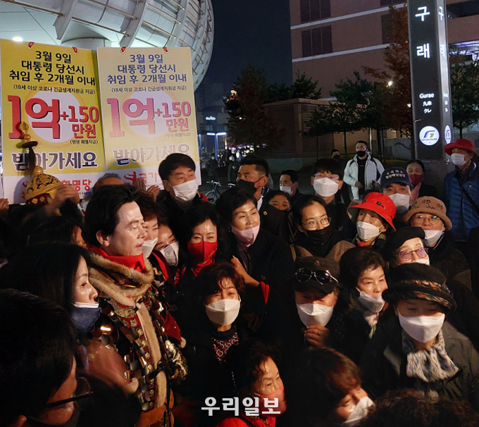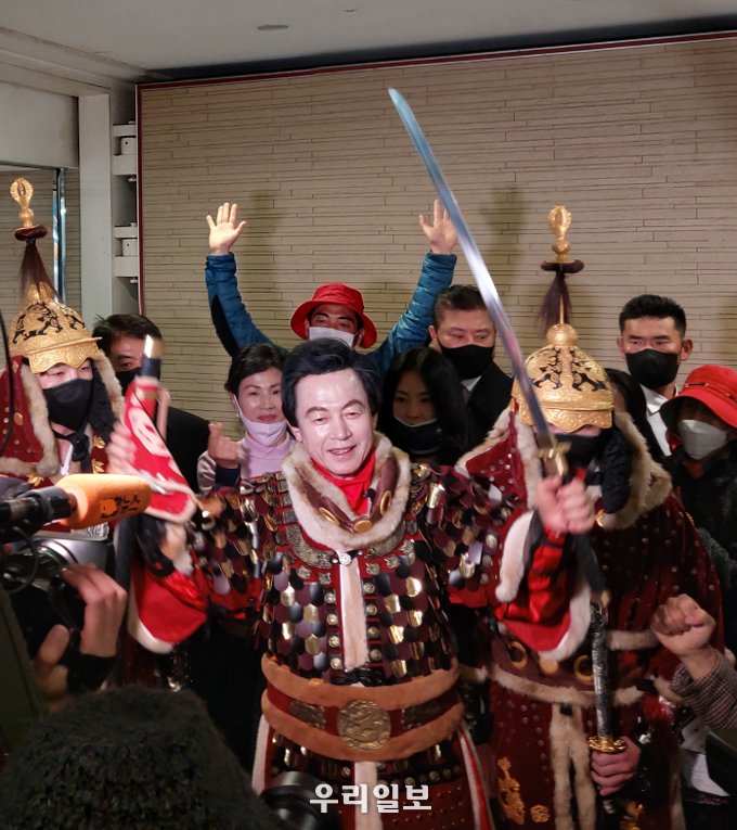 허 후보는 “오늘은 지난 8월 18일 행주산성에서 장군복을 입고 ‘내가 이 나라를 구하겠노라’는 말은 국민을 구하겠다는 뜻으로 3달이 지난 오늘 11월 18일 수능일에 수능에 지친 학생과 학부모님들에게 다시 희망의 약속 말씀을 드린다“고 말했다.