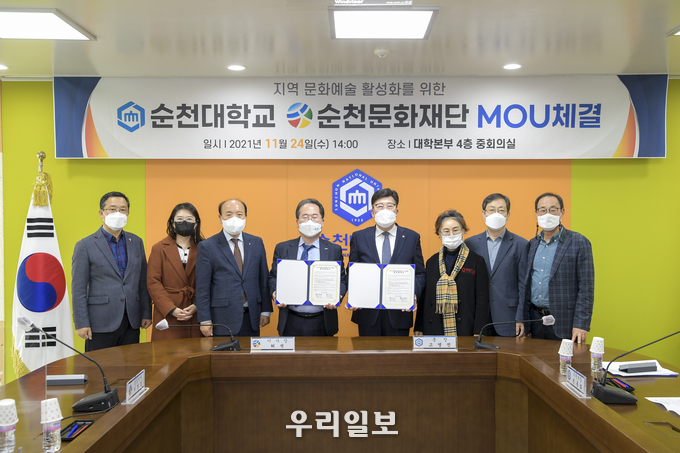 순천문화재단(이사장 허석)과 국립 순천대학교(총장 고영진)는 지난 11월 24일 순천대학교 대학본부에서 지역 문화예술 활성화를 위해 상호 협력해 나가기로 업무협약을 체결했다고 밝혔다.