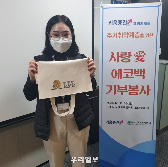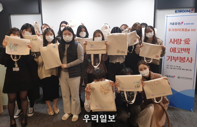 (사)주거복지연대(이사장 남상오)와 키움증권(대표 이현)이 함께 취약계층 지원을 위한 에코백 기부행사를 지난 11월 30일 열었다고 밝혔다.