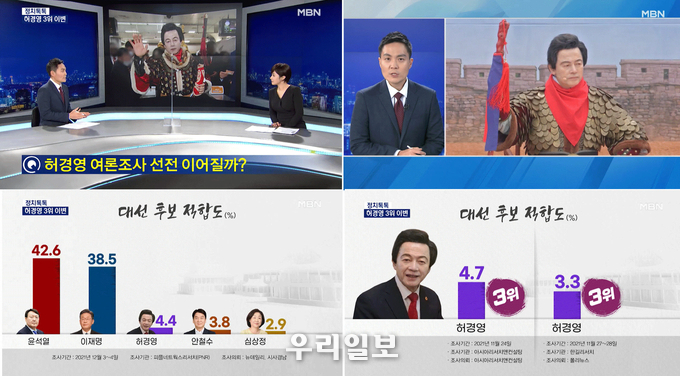 이 때 김주하 앵커는 스스로 놀라는 듯 “와~”라는 탄성이 방송을 통해 흘러 나왔다. 기자의 보도는 이어졌다. “현재 양강(이재명·윤석열) 후보의 비호감도가 매우 높기 때문에 나타나는 현상으로 봐야할 지, 허 후보의 지지율이 유의미하게 나오는 수치가 계속 나올 지, 앞으로 여론조사에서 관심있게 볼 대목입니다”라고 보도를 매듭지었다.