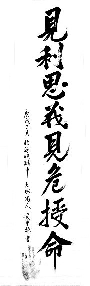 허 후보는 “불세출의 민족영웅 안중근 의사는 일제 침략 원흉 이등박문(伊藤博文)을 척살하여 대한국인의 위용과 독립의지를 전 세계에 떨쳤습니다. 안중근 의사께서 남긴 옥중 친필 유묵이 여러 점 있지만, 오늘날 우리가 귀감을 삼고 실천하며 살아가야 할 글로 남긴 옥중 유언이 있습니다. 견리사의 견위수명 “見利思義 見危授命”“이익을 보면 정의롭게 얻어진 것인가를 생각하고, 조국이 위태로우면 목숨을 던져라”라고 말했다.