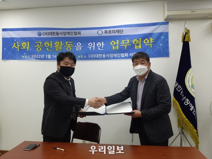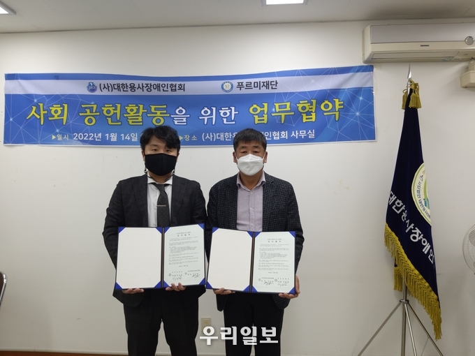 푸르미재단(이사장 박위광)과 (사)대한용사장애인협회(대표 박승범)는 지난 14일 연수동 장애인협회 사무실에서 청소년들을 보호육성 및 사회적 약자를 돕는 사회 공헌 활동에 함께 하자는 뜻을 모아 업무협약을 체결했다.