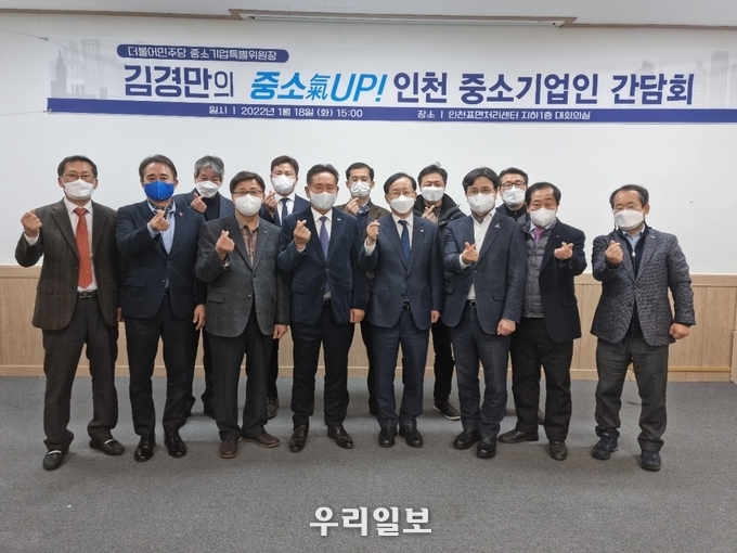 중소기업중앙회 인천지역본부(회장 이순종)는 18일 김경만 국회의원(더불어민주당 중소기업특별위원회 위원장)과 인천지역 중소기업·소상공인과의 간담회를 인천표면처리센터에서 가졌다.