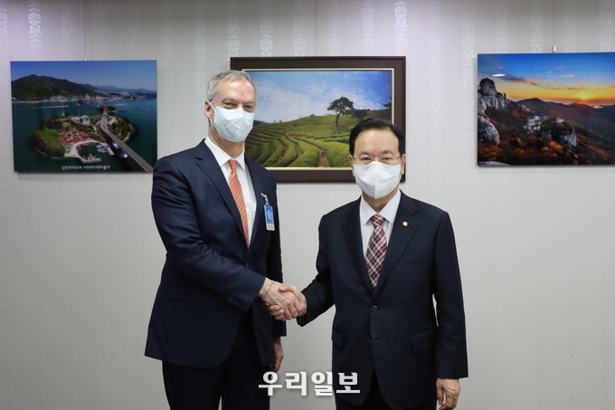 하영제 의원(사천·남해·하동)이 18일, 국회의원회관에서 보잉코리아 사장 겸 보잉 인터내셔널 부사장인 에릭 존(Eric John)과 만났다.