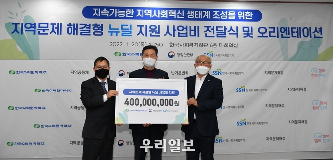 세 기관은 20일 한국사회복지회관 대회의실에서 지역문제 해결형 뉴딜 지원사업 지원금 4억원을 전달하고 지역사회혁신 활동 지원을 위한 사업 시작을 알렸다.