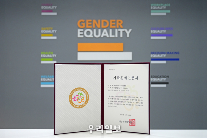 한국양성평등교육진흥원(원장 장명선, 이하 양평원)이 여성가족부가 주관하는 ‘가족친화인증기업’ 재인증을 획득했다고 27일 밝혔다.