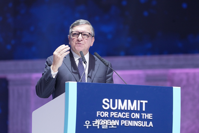 이어서 호세 마뉴엘 바로소(Jose Manuel Barroso)전 유럽연합 집행위원장의 기조연설, 일리르 메타(Ilir Meta) 알바니아 대통령·로마노 프로디(Romano Prodi)전 유럽연합 집행위원장·도미니크 드 빌팽(Dominique de Villepin) 전 프랑스 총리·호세 마리아 아스나르(Jose Maria Aznar) 전 스페인 총리·알빈 쿠르티(Albin Kurti) 코소보 총리의 한반도 평화통일 지지 기조연설, 무하마드 부하리(Muhammadu Buhari) 나이지리아 대통령의 기조연설, 마키 살(Macky Sall)세네갈 대통령 겸 아프리카연합(AU) 의장·조지 웨아(George Weah) 라이베리아 대통령·카를로스 빌라 노바(Carlos Vila Nova) 상투메 프린시페 대통령·굿럭 조나단(Goodluck Jonathan) 전 나이지리아 대통령·릭 아돌프 티아오(Luc Adolphe Tiao) 전 부르키나파소 총리·폴 비요게 음바(Paul Biyoghe Mba) 전 가봉 총리의 한반도 평화통일 지지 기조연설 후 한반도 평화서밋 특별 공연단의 평화공연의 순으로 진행됐다.