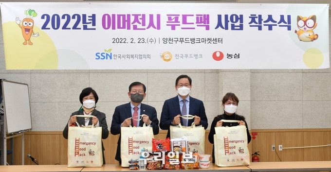 한국사회복지협의회 전국푸드뱅크와 ㈜농심은 23일 양천구푸드뱅크마켓센터에서 올해 이머전시 푸드팩 사업 착수식을 갖고 코로나19 장기화 등 다양한 이유로 결식위기에 놓인 취약계층을 지원키로 했다.