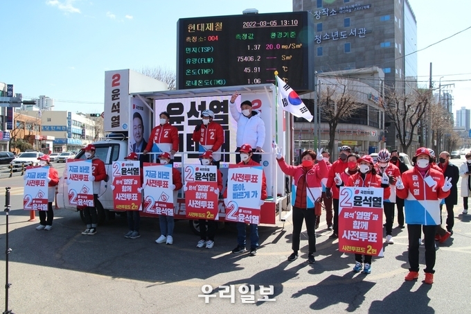 지난 5일 동구 송림로타리와 동인천역 북광장에서 이학재·이현웅위원장과 심재돈 국민의힘 지역구위원장이 함께 유세차에 올라 국민의힘과 국민의당은 정권교체를 목표로 원팀이 됐다며 서로 두 손을 맞잡고 합동 유세를 통해 윤석열 후보 지지를 호소했다.