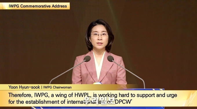 이어 윤 대표는 “세계 각국의 대통령께 부탁한다. 지속가능한 평화가 실현될 수 있도록 ‘DPCW’가 유엔에 국제법으로 상정되고 법제화될 수 있도록 신속한 행동을 보여주길 간절히 부탁한다”고 호소했다.