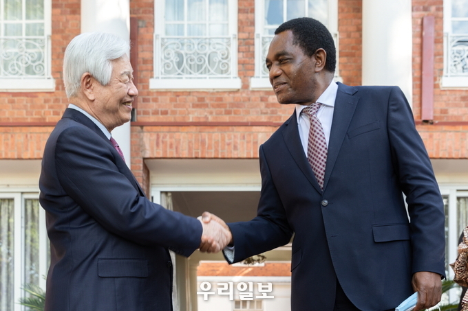 지난 23일(현지시간), 남부 아프리카 6개국(말라위, 잠비아, 짐바브웨, 에스와티니, 레소토, 모잠비크)을 정부 초청 방문 중인 IYF 설립자 박옥수 목사가 말라위에 이어 두 번째 방문국인 잠비아에서도 대통령과 만나 마인드교육 시행을 논의했다.