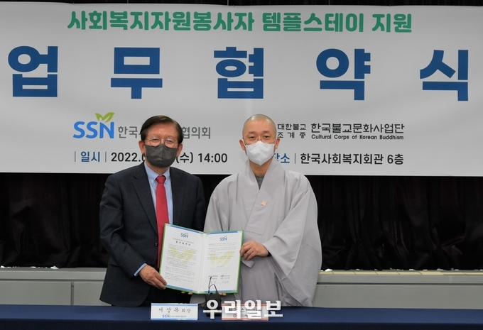 한국사회복지협의회(회장 서상목)와 한국불교문화사업단(단장 원경스님)은 6일 서울 마포구 소재 한국사회복지회관에서 사회복지자원봉사 활성화를 위한 템플스테이 체험 기회 제공 등의 업무협약을 체결했다.