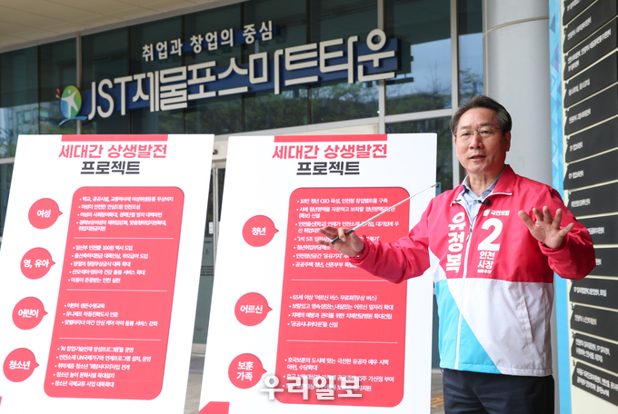유 예비후보는 이날 청년 창업기지인 제물포스마트타운(JST)에서 이런 내용의 3차 공약인 세대간 상생발전 프로젝트를 발표했다.