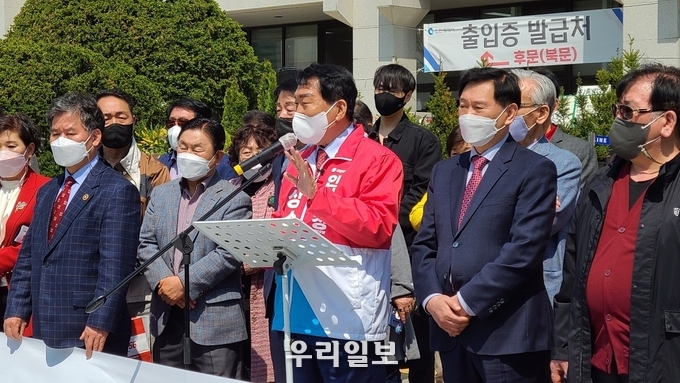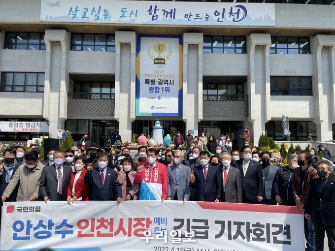 안상수 국민의힘 인천시장 예비후보가 15일 인천시청 중앙계단 앞에서 긴급 기자회견을 열고 ”시민과 당원 여러분들의 힘으로 법원에서 무고함을 인정받았다“며 “선거철 반복되는 시련 중 하나인데 그 여느 때처럼 안상수답게 반드시 극복하고, 반드시 시장에 당선돼서 인천시민 여러분들의 뜻을 실천하겠다”고 밝혔다.