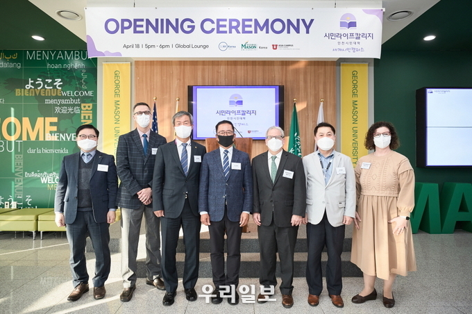 한국조지메이슨대학교(George Mason University Korea, 대표 로버트 매츠)는 한국뉴욕주립대학교, 유타대학교 아시아캠퍼스와 함께 18일 한국조지메이슨대학교 글로벌 라운지에서 ‘2022학년도 인천시민대학 시민라이프칼리지 세계시민캠퍼스’의 개강식을 가졌다고 밝혔다.
