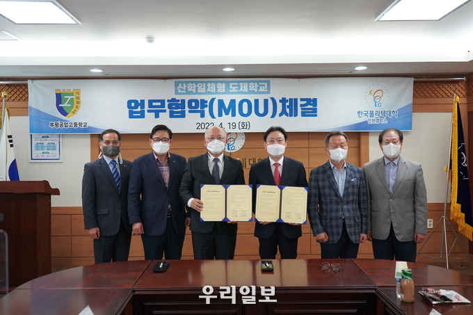 한국폴리텍Ⅱ대학(학장 이상호)은 19일 올해 고교단계 일학습병행 공동훈련센터 지원사업의 원활한 운영을 위해 부평공업고등학교, 인천소방고등학교 2개 고교와 산학일체형 도제학교 업무협약(MOU)을 체결했다.