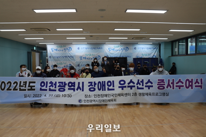 인천시장애인체육회(회장 박남춘)는 22일 인천장애인국민체육센터(연수구 선학동)에서 국내종합대회에서 우수한 성적을 거둬 선발된 영입, 우수, 꿈나무선수를 대상으로 훈련비 증서수여식을 개최했다.