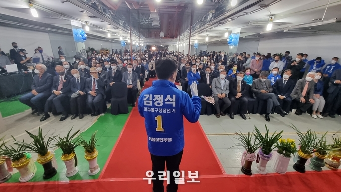 김정식 더불어민주당 미추홀구청장 후보가 선거사무소 문을 열고 승리를 다짐했다.