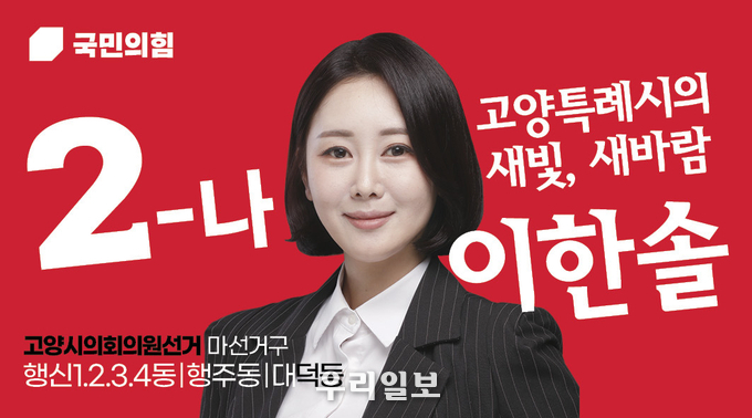 이어, 이한솔 고양시의원(마선거구) 후보는 "그동안 언론인으로 활동하며 지역 내 문제들을 예리하게 살펴보며 어떻게 해결해나가야 할지 고민을 많이 해왔다"며 "청년의 패기로 적극적으로 주민들과 소통하며 고양시 정권교체에 힘을 보태겠다"고 말했다.