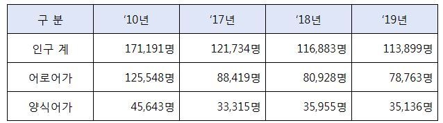 전체 어가인구가 지속적으로 감소하고, 어촌의 고령화도 심각해지는 현실을 감안하여, 어업소득의 비과세 기준을 상향하여 어업인의 유입을 유도하고 어촌지역의 경제활성화를 도모해야 하는 상황이다.