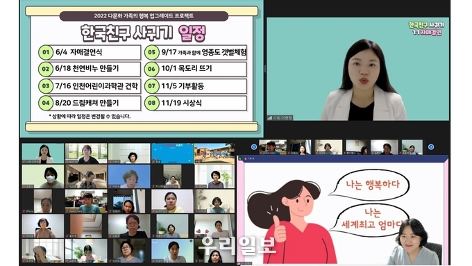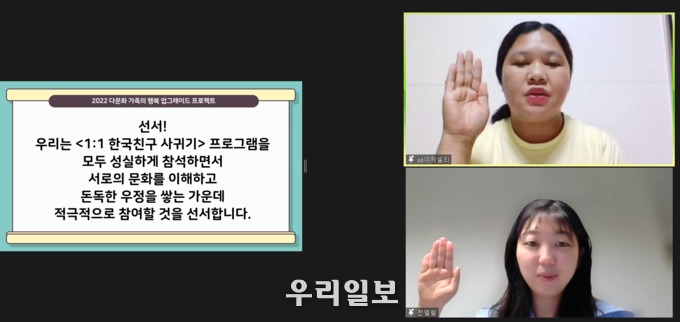 지난 4일 온라인으로 진행된 첫 만남에서는 앞으로 성실히 참여할 것을 다짐하는 참가자 선서를 시작으로 남성보컬그룹 하모닉스 공연, 다문화 인성교육이 차례로 이어졌다.