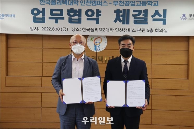 한국폴리텍Ⅱ대학(학장 이상호)은 지난 10일 교육적 상생․협력을 통해 직업교육의 효과를 높이기 위해 부천공업고등학교와 교류 및 교육협력 업무협약(MOU)을 체결했다.