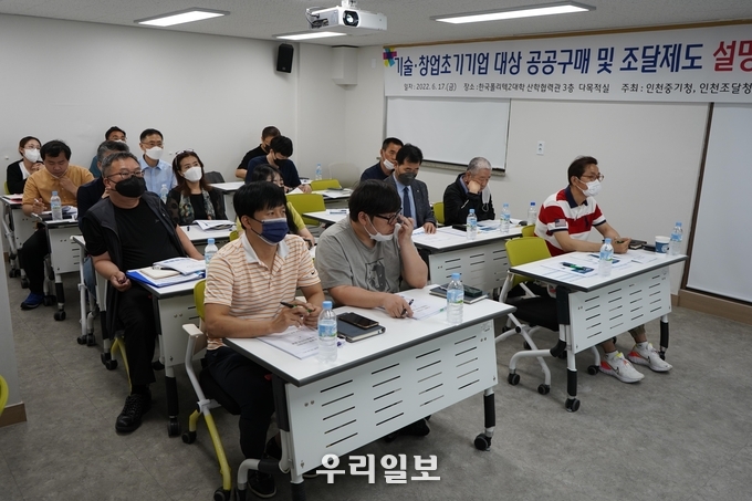 인천지방조달청에서는 조달청 나라장터 입찰참가자격 등록, 온라인상품몰인 벤처나라 상품등록 제도, 혁신시제품의 시범구매제도에 대해 설명했다.