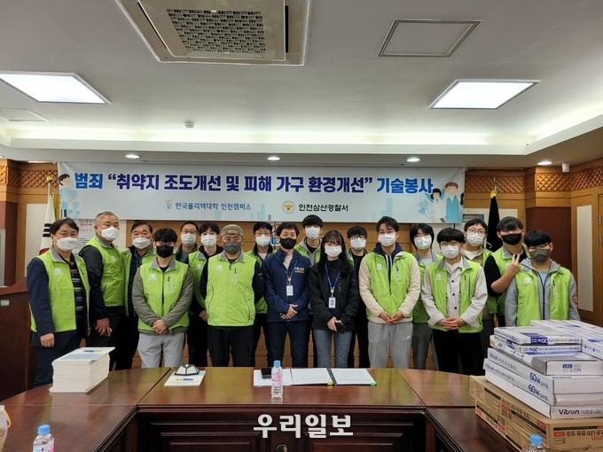 한국폴리텍대학 인천캠퍼스(학장 이상호) ‘너랑나랑 더하기 봉사단은 지난 29일 인천 삼산경찰서 생활안전과와 범죄취약지 조도개선 및 범죄피해가구 주거환경 개선에 나섰다.