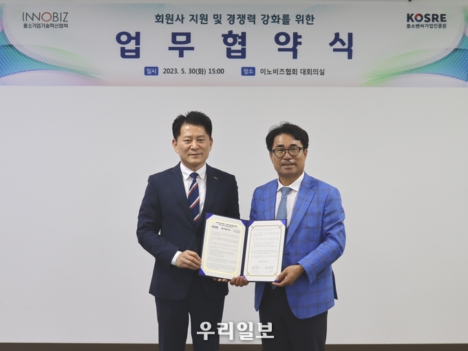 【우리일보 김선근 기자】 중소벤처기업인증원(원장 엄진엽)과 이노비즈협회(회장 임병훈)는 30일 이노비즈협회 회의실에서 이노비즈 회원사의 ISO 인증 취득 및 ESG 경영 도입·이행 지원을 위한 공동 업무협약을 체결했다.
