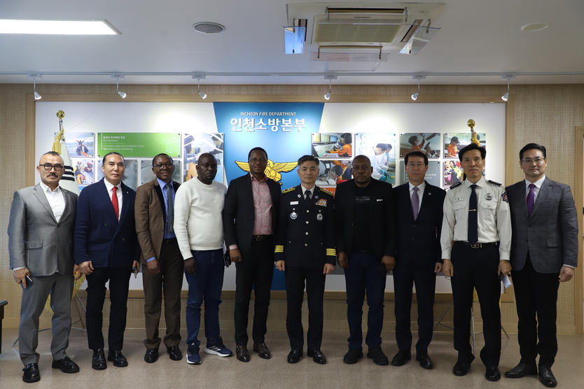 【우리일보 구광회 기자】 콩고민주공화국 내무부 소속 고위 관계자 4명이 11월5일 인천소방본부를 방문해 대한민국과 콩고민주공화국 간 화재 대응 역량 강화 및 협력 방안에 대해 논의하는 자리를 가졌다.