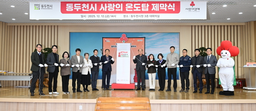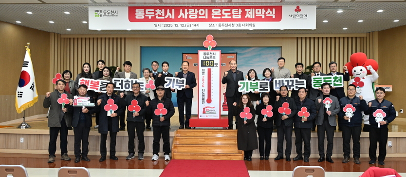 【우리일보 동두천=이정희 기자】동두천시는 지난 12월 12일 동두천시청 대회의실에서 동두천시장을 비롯해 동두천시의회 의장 및 의원, 경기북부 사회복지공동모금회 관계자, 기업·단체·시민 등 40여 명이 참석한 가운데 ‘사랑의 온도탑’ 제막식을 개최했다.