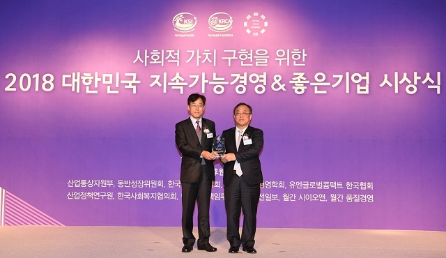 [박근원기자]포스코건설이 22일 한국표준협회가 주관하는『2018 대한민국 지속가능성 대회』에서 `대한민국 지속가능성 지수(KSI, Korea Sustainability Index) 건설분야 1위` 기업으로 선정됐다.