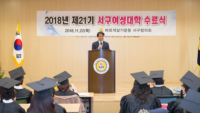 이재현 청장은 “여성대학 졸업생 여러분이 서구의 미래를 이끌어가는 데에 큰 역할을 해주시길 바란다”고 말했다.