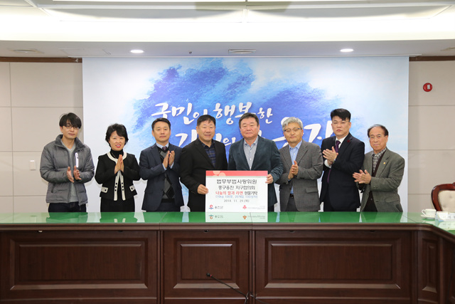 이날 쌀과 라면을 기탁한 법무부 법사랑위원 중구옹진지구 협의회 이석홍 회장은“어려운 이웃들이 따뜻한 연말을 보낼 수 있도록 쌀을 기탁했으며 앞으로도 지역사회 발전을 위해 노력하겠다.”고 말했다.
