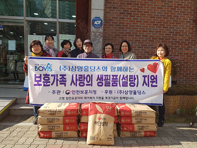 【박근원 기자】인천보훈지청(지청장 장정교)은 11월 30일(금) 주식회사 삼양홀딩스(부사장 윤재엽)로부터 설탕 300kg를 지원받아 『보훈가족 사랑의 생필품(설탕)』지원을 실시했다.