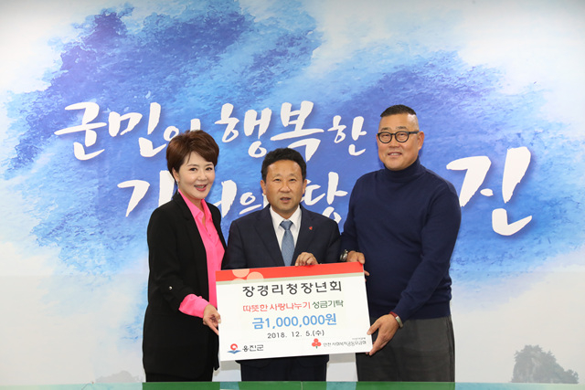 【박근원 기자】옹진군(군수 장정민)은 지난 5일 장경리 청장년회(회장 김재홍)에서『희망2019나눔캠페인 옹진군 따뜻한 사랑나누기』동참과 지역의 어려운 이웃을 위한 성금(금일백만원)을 기탁했다고 밝혔다.