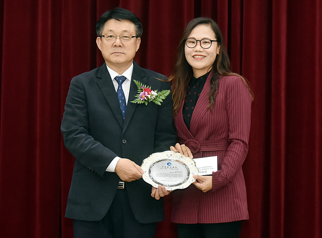 【장명진 기】허종식 균형발전정무부시장이 6일 시청 대회의실에서 열린 '제23회 인천환경대상 시상식'에서 환경단체부문 수상단체 청라힐스테이트아파트에 인천광역시 시장상을 수여하고 있다. [사진제공=인천시]