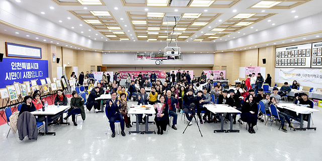 【장명진 기자】박남춘 인천광역시장이 8일 인천시청 대회의실에서 열린 '2018년 중도입국청소년과 함께하는 새꿈학교 수료식'에서 참석자들과 기념촬영을 하고 있다.[사진제공=인천시대변인실]
